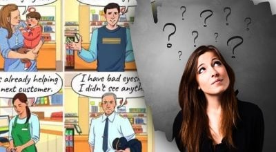 Et komplekst puslespil har efterladt folk i vildrede, efter at de har forsøgt at finde ud af, hvem af personerne på billedet der er tyven, som stjal tegnebogen....